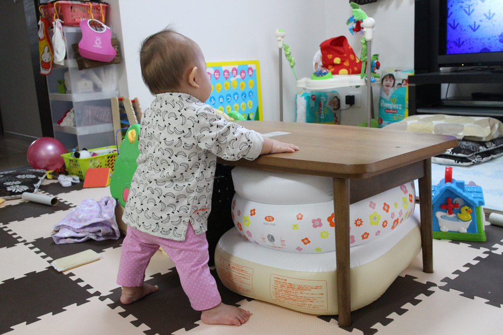 なんとか仰向けにしたものの、娘はもう、ハイハイで移動して