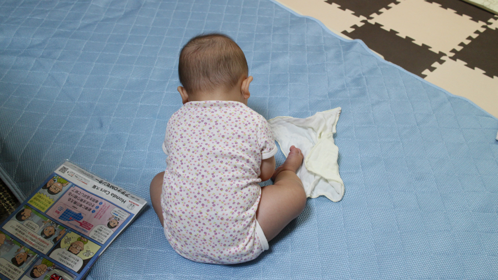 ●お尻を上げて、後ろへずり下がって行くようになった(5ヵ月後半)。