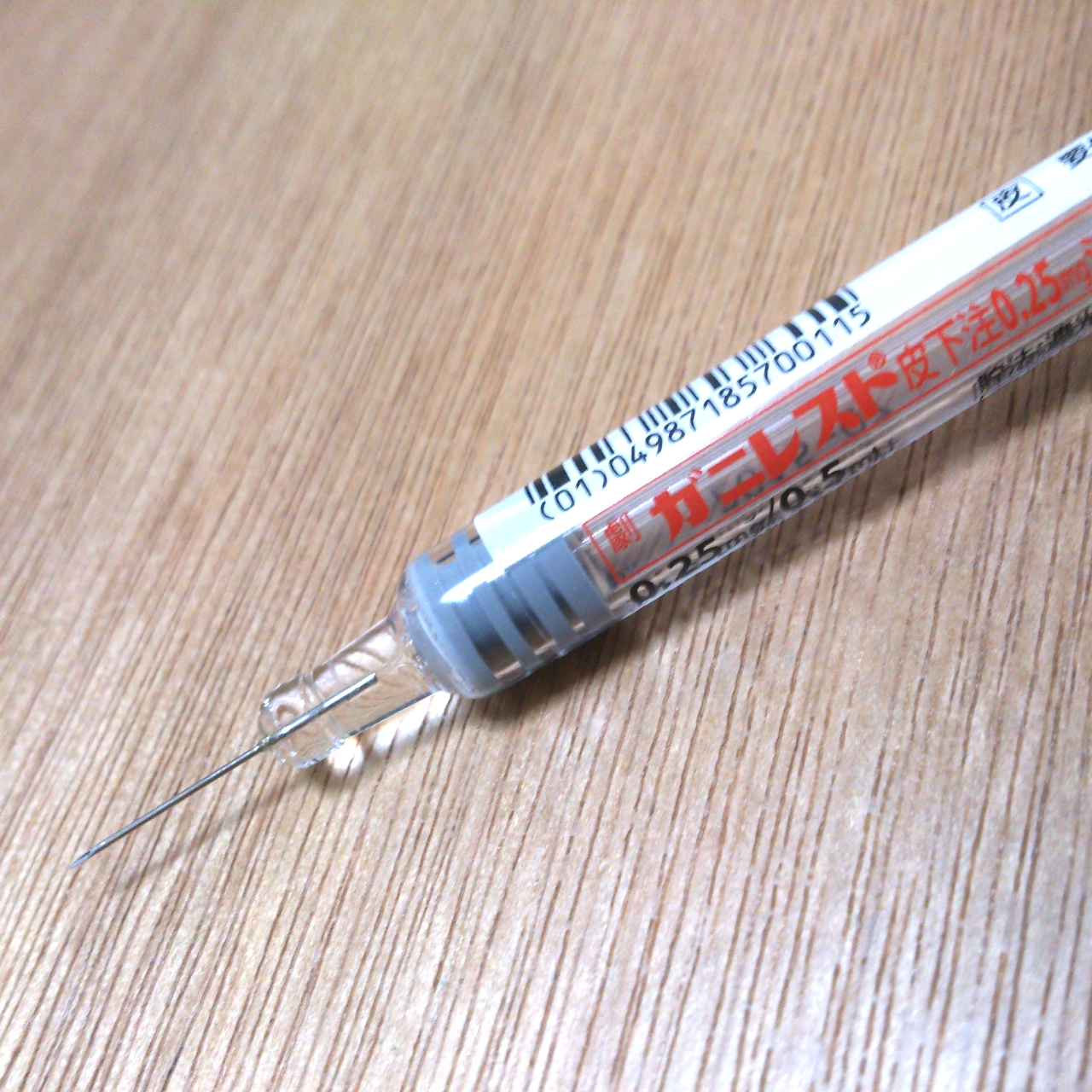 注射器をピンピンと指で弾いて、ピストンを押し上げる・・・。