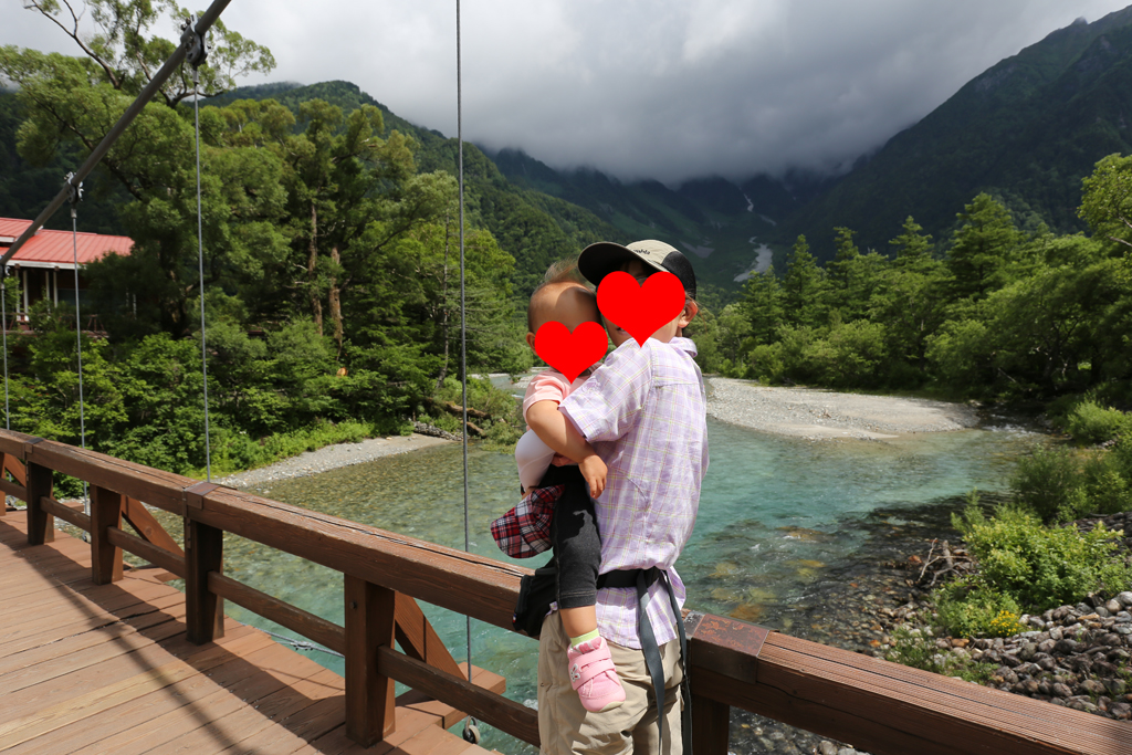 河童橋に到着したので、娘を起こして、しばらく休憩。