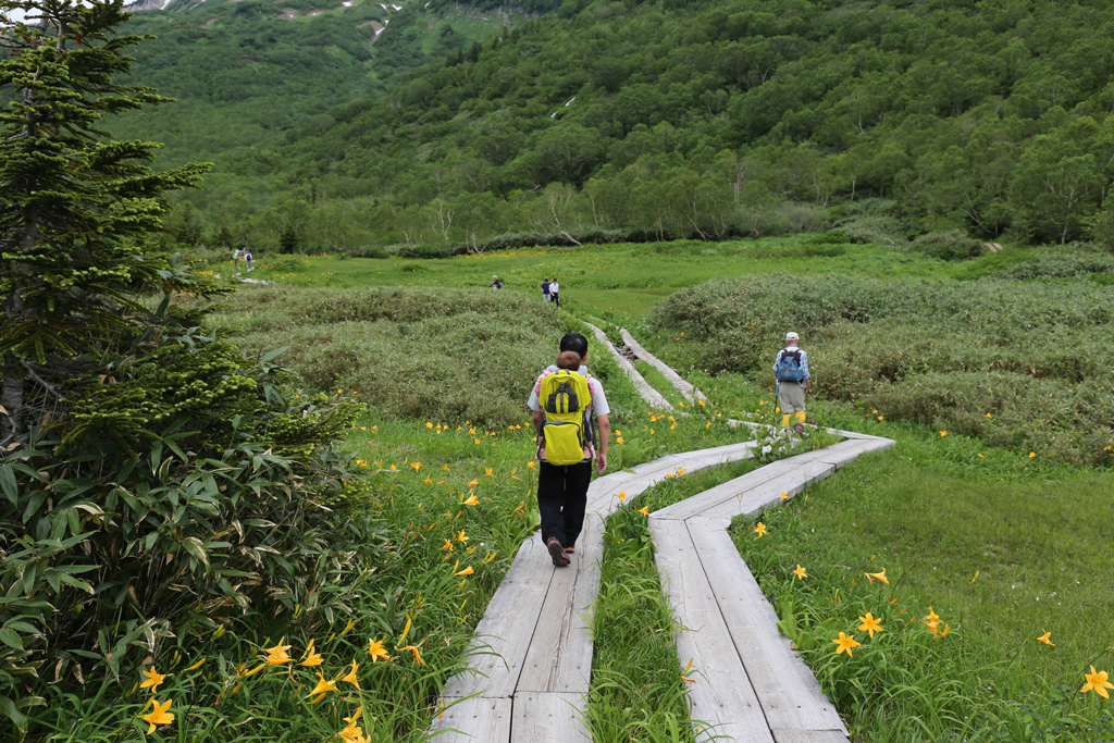 少し歩くと、ニッコウキスゲが綺麗に咲いていました。