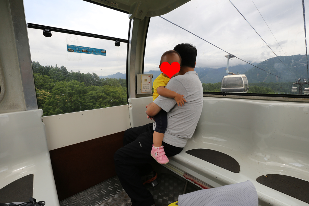 帰りのゴンドラでも、また娘は怖くてパパにしがみついてました。