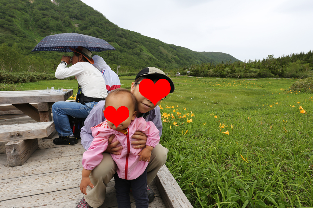 ニッコウキスゲが綺麗な浮島湿原でしばらく休憩。