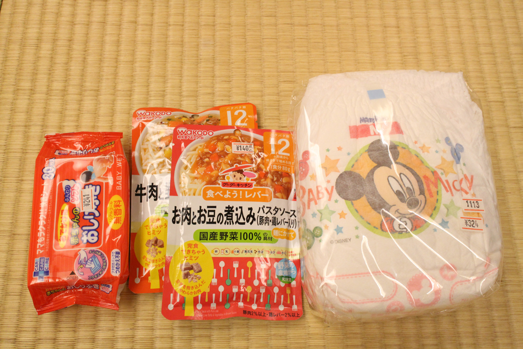 ↑子連れプランだったので、特典でオムツや離乳食もゲットでき、