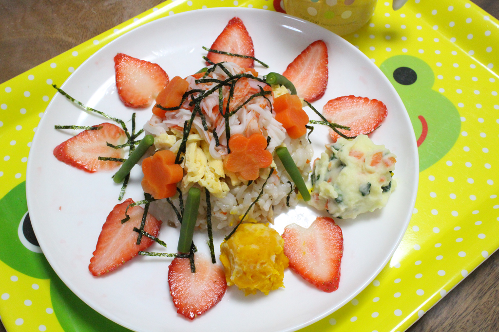 離乳食に作ったちらし寿司は、8割がた食べてくれました。